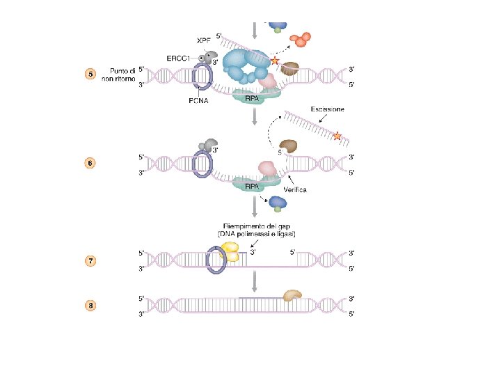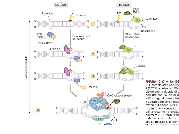 Effettori/Mediatori del Riparo e Malattie Genetiche Escissione di nucleotidi-NER XPB-XPD (subunità di TFIIH) XPF-XPG (nucleasi) XPE? Riparo per ricombinazione BRCA-2 Xeroderma pigmentosum (gr. B, D, F, G) Forme genetiche di cancro della mammella