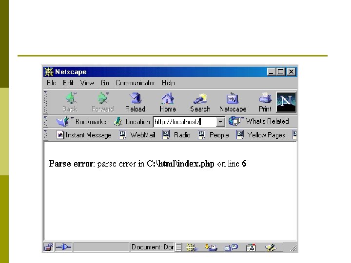 Erstellen eines PHP-Dokumentes p man speichert Datei des einfach Editors oder des komfortablen HTML-Editors mit der Endung *. php p man nennt eine bereits vorhandene Textdatei (oder ähnliches) einfach in das Dateiformat *. php durch einfaches „umbenennen“ um p eigentlich das gleiche wie HTML-Datei, nur mit Endung. php p fertig ist die PHP-Datei und man kann mit dem programmieren beginnen