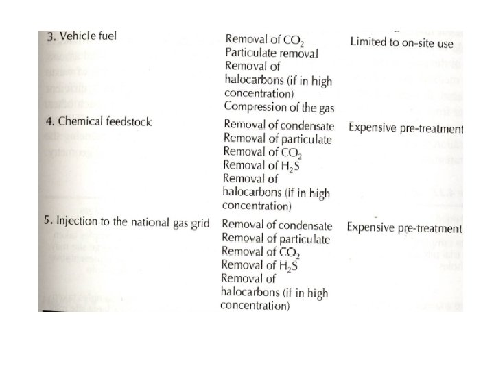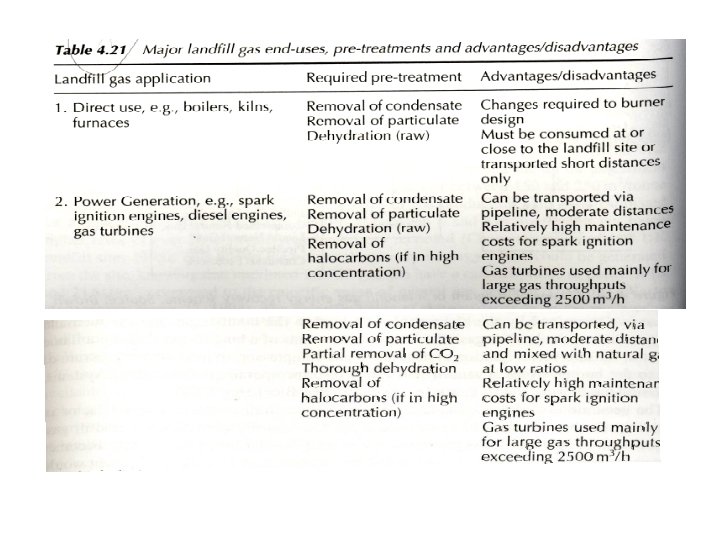 - Major advantages: • • Waste landfill is low cost compared with other disposal options and the fact that a wide variety of wastes are suitable for landfill. Collection & utilization of landfill gas as a fuel for energy generation. • However, landfill achieves a lower conversion of the wastes into energy with about one-third less energy recovery per tonne from landfill gas than incineration. • This is due to the conversion of the organic materials in the waste into non-combustible gases and leachate and general losses from the system. -Leachate represents the water which passes through the waste from precipitation, and water generated from the waste within the landfill site, resulting in a liquid containing suspended solids, soluble components of the wastes and products from the degradation of the waste by various microorganisms.