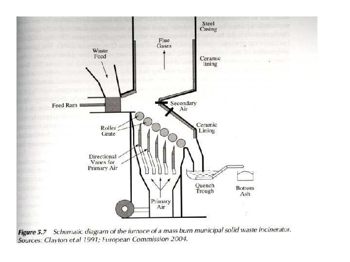 Types of incinerator: 1) Mass-burn incineration 2) Other types – fluidized bed, cyclonic, starved air or pyrolytic, rotary kiln, etc.