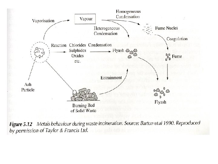 Wet Scrubbers (Dry or semi-dry scrubbers)- remove soluble acid gases such as hydrogen chloride, hydrogen fluoride and sulfur dioxide. The acid gases passes through spray of liquid (alkaline solution such as Ca. OH or Na. OH). Then, hydrochloric or hydrofluoric acids produced, thus remove heavy metals which are soluble in acid solutions. De- NOX systems- Nitrogen oxides, NOX (NO & NO 2) are formed from nitrogen in the air used for combustion and in fuel itself at high temperature. Contributes to acid rain and act as photochemical oxidant in the atm. To reduce NOX control the combustion conditions (lower T, lower O 2 levels) use Non-catalytic reduction using ammonia (high T 850 -950 ⁰C) controlled by selective catalytic reduction, SCR (ammonia added, low T, wide T range, Pt, Pd, etc)