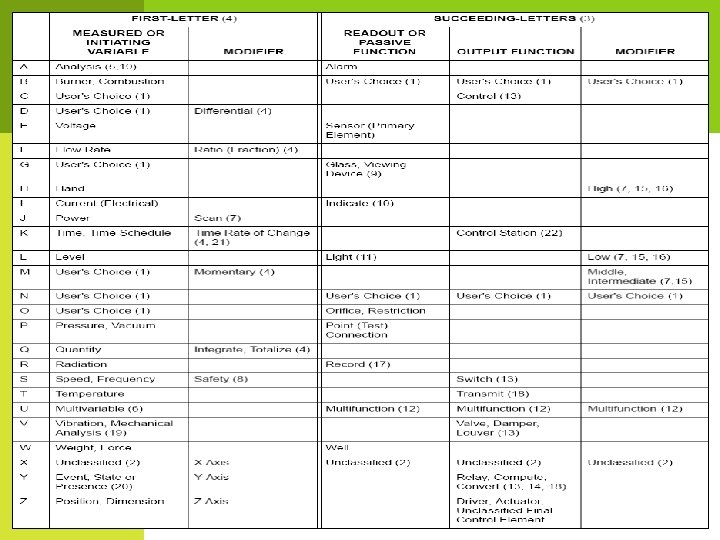 PIPING AND INSTRUMENTATION DIAGRAM (P&ID) Instrumentation Numbering q LIC 10003 L = Level shall be measured. IC = Indicating controller. 100 = Process unit no. 100 in the area of no. 1 03 = Loop number 3