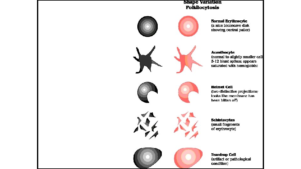 Erythrocyte Shape Abnormalities • Poikilocytosis – general term for shape abnormalities