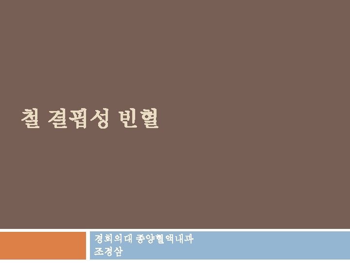 Clinical presentation of IDA Signs of anemia : depends on severity and chronicity of anemia Fatigue Pallor Reduced exercise capacity Pica and pagophagia Restless leg syndrome Cheilosis (구순증, 구각미란) Koilonychia (숟가락손톱)