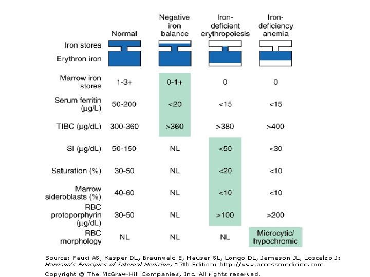 Stages of iron deficiency • Negative iron balance : blood loss(10 -20 m. L/day), pregnancy, rapid growth spurt, inadequate dietay iron • Iron-deficient erythropoiesis : microcytic cells, hypochromic reticulocytes • Iron-deficiency anemia