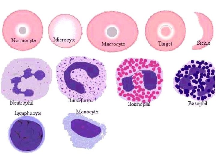 ESAME EMOCROMOCITOMETRICO • GR Valori di riferimento: M: 4. 6 -5. 8 x 1012/l F: 4. 200. 000 -5 x 1012/l • MCV= Volume Corpuscolare Medio Ht • MVC= N° GR • MCV senza anemia = etilismo cronico, Carenza di Vit. B 12 senza anemia = thalassemia eterozigote