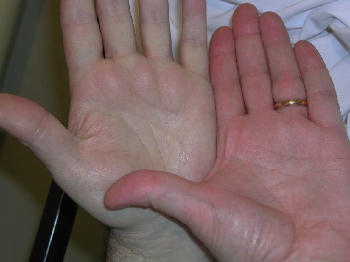 Sintomatologia • • • Esordio subdolo. cute pallida e subitterica (colore di cera vecchia), glossite atrofica, disturbi digestivi legati all'achilia, modesta epatosplenomegalia, segni di insufficienza cardiaca e di stenocardia (da ipossiemia), • presenza di turbe psichiche (stato confusionale, manifestazioni paranoidi) e neurologiche, dovute a lesioni degenerative dei cordoni laterali e posteriori del midollo spinale, con quadri similtabetici e talora paraplegici o a tipo di lesione spinale trasversa.