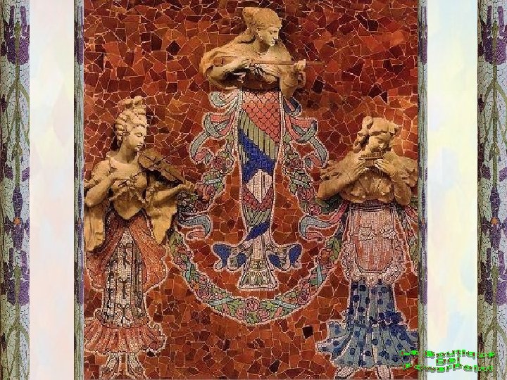 MOSAICO ALEGÓRICO DEL ORFEÓ CATALÁ (En la fachada del Palau, realizado por Lluís Bru)