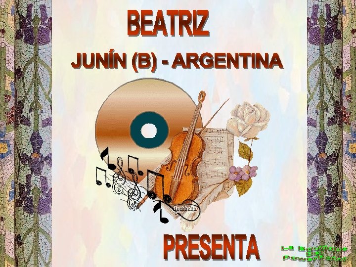 COMPAGINACIÓN: BEATRIZ PRESENTACIONES JUNÍN B - ARGENTINA IMÁGENES: ALGUNAS TOMADAS EN OCT. 2010 OTRAS BAJADAS DE INTERNET FONDO MUSICAL: LA BODA DE LUIS ALONSO (INTERMEDIO)