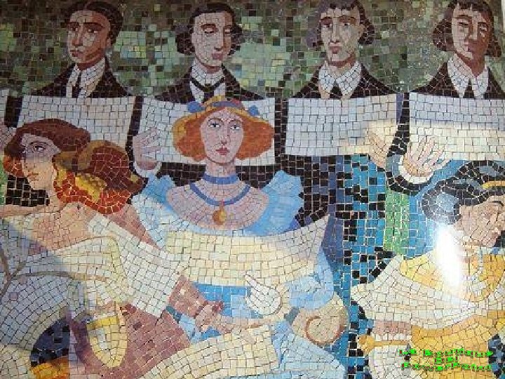 MOSAICO ALEGÓRICO DEL ORFEÓ CATALÁ (En la fachada del Palau, realizado por Lluís Bru)