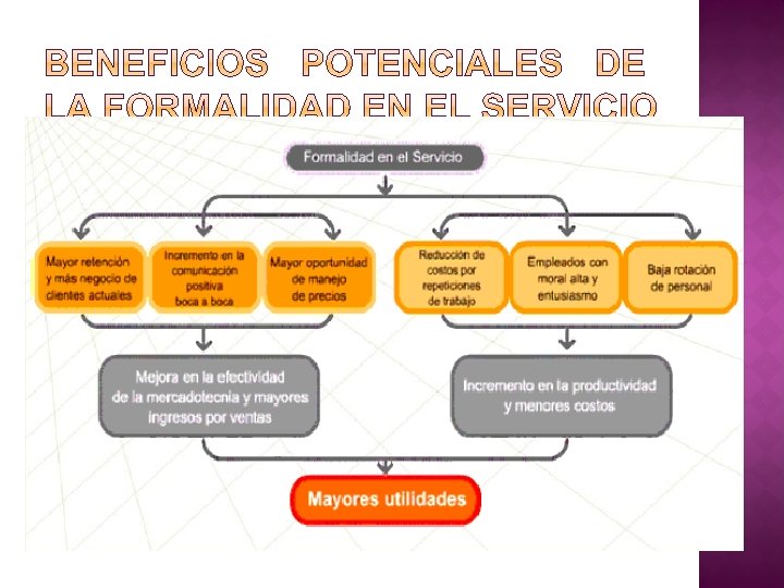 • • • Formalidad. - la capacidad de desempeñar el servicio prometido de una manera exacta y fiable. Tangibilidad. - apariencia física de las facilidades físicas, equipo, personal y material de comunicación. Seguridad. - conocimiento y cortesía de los empleados y su capacidad de transmitir confianza y credibilidad.