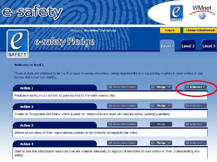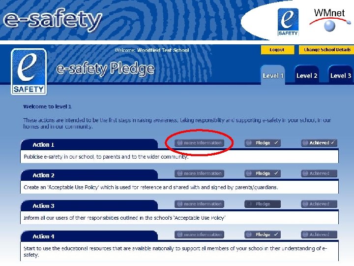 Provides a more detailed breakdown of e-safety development in school It enables your school to: identify where you are identify the practical steps you can take to improve E-safety provision and procedures