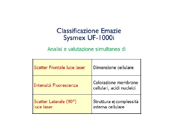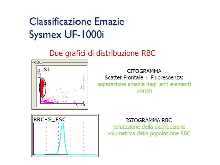 UF 1000 PER L’IDENTIFICAZIONE DEI PARAMETRI QUANTITATIVI VENGONO UTILIZZATI I SEGUENTI SEGNALI: Fsc: Dimensione della particella Fscw: Lunghezza della particella Fl: Intensità di fluorescenza Flw: Lunghezza della porzione colorata Imp: Volume della particella