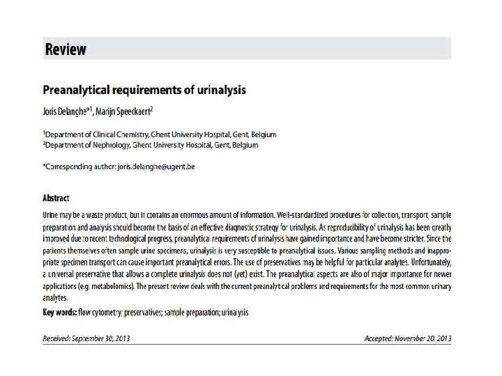 Vecchie linee guida: European Urinalysis Guidelines. The Scandivian Journal of Clinical and Laboratory Investigation. 60: 1 -96, suppl. 231, 2000 NCCLS GP-16 A 2 Urinalysis and Collection, trasportation, and Preservation of Urine Specimens; Approved Guideline ±Second Edition vol. 21: n. 19: 4 -21 CLSI. Urinalysis; Approved Guideline²Third Edition. CLSI document GP 16 -A 3. Wayne, PA: Clinical and Laboratory Standards Institute; 2009
