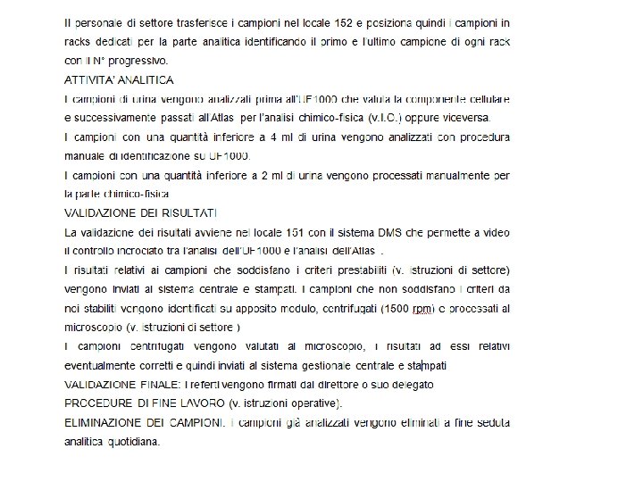 Istruzione Operativa del Processo Produttivo IO 18. 02 ANALISI COMPLETA DELLE URINE E SEDIMENTO