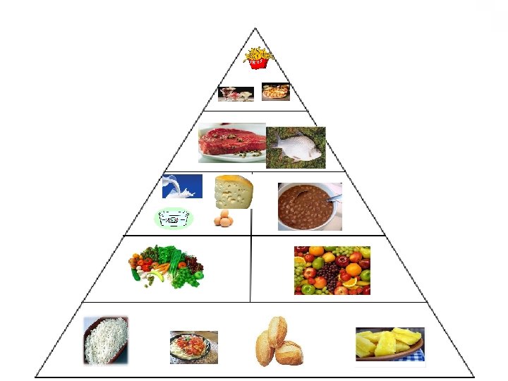 ALIMENTAÇÃO SAUDÁVEL • A pirâmide funciona da seguinte maneira: A base larga indica os alimentos mais necessários e que devem ser mais consumidos, a medida que vai encurtando, vai diminuindo a necessidade de consumir esses tipos de alimentos, chegando até a ponta da pirâmide que indica alimentos que devem ser ingeridos em poucos quantidades.