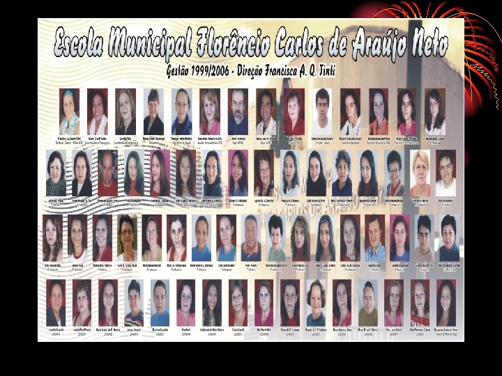 3. Histórico do Estabelecimento • No ano de 1989 se constrói uma nova escola, municipal dotada de quatro salas de aula, localizada em Fundo de Vale (Guarujá), com objetivo de atender aos filhos de aproximadamente 420 famílias carente em um projeto mutirão da Cohapar. A Secretaria de Educação convida a professora Vera Lúcia Thomann Moreira para assumir a direção e a professora Jocilene Terezinha Otto Di Lauro para assumir a coordenação pedagógica. • Em 1990 a comunidade escolar reúne-se em Assembléia Geral e decidem que a escola levaria o nome de um líder comunitário local, através de um abaixo assinado acatado pelo Poder Público, a escola passa a se chamar Florêncio Carlos de Araújo Neto (1º secretário da Associação de Moradores do Jardim Guarujá).