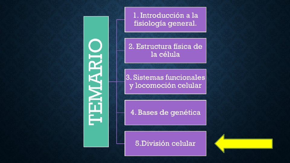 TEMARIO 1. Introducción a la fisiología general. 2. Estructura física de la célula 3. Sistemas funcionales y locomoción celular 4. Bases de genética 5. División celular