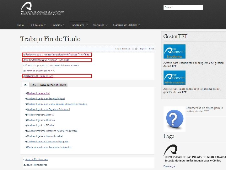 Escuela de Ingenierías Industriales y Civiles de Las Palmas de Gran Canaria (ULPGC) Gestor TFT Trabajo Fin de Título Normativa y requerimientos