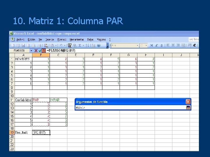13. Fórmula de Spearman-Brown r 11 = 2 r ½½ 1+ r ½ ½ Pearson r = -0. 1893885