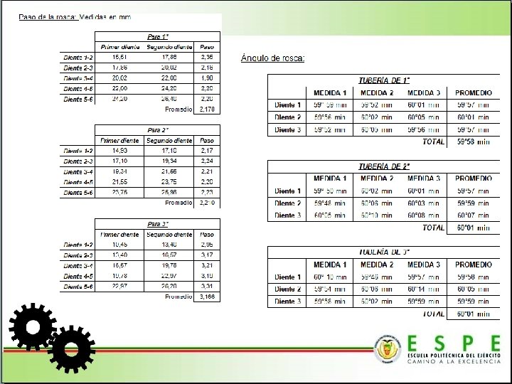 CONCLUSIONES • Se diseñó y construyó una máquina roscadora para tubos desde un cuarto hasta cuatro pulgadas de diámetro para Proasin aplicando un diseño efectivo y cumpliendo con las expectativas económicas. • Se describió de manera general las roscas y se realizó un estudio más amplio sobre las roscas NPT, estableciendo su aplicación para el roscado mediante la máquina. • Mediante un análisis de decisión, se seleccionó de entre varias opciones a la que constituiría la alternativa óptima en cada ítem, éstas fueron verificadas y aplicadas.