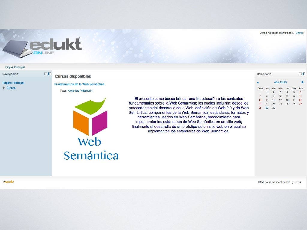 A través de la implementación de un curso interactivo en moodle 2. 3, así como el desarrollo de un prototipo en la plataforma de VLBS, explicar de manera exacta que es Web Semántica y por qué es importante aprender acerca de ella.