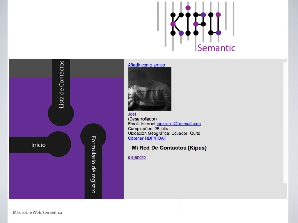 • www. vlbs. net/Semantic. Kipu • Experimentar con los micro-formatos h. Card, v. Card y así también con las tecnologías RDF, FOAF, GRDDL.