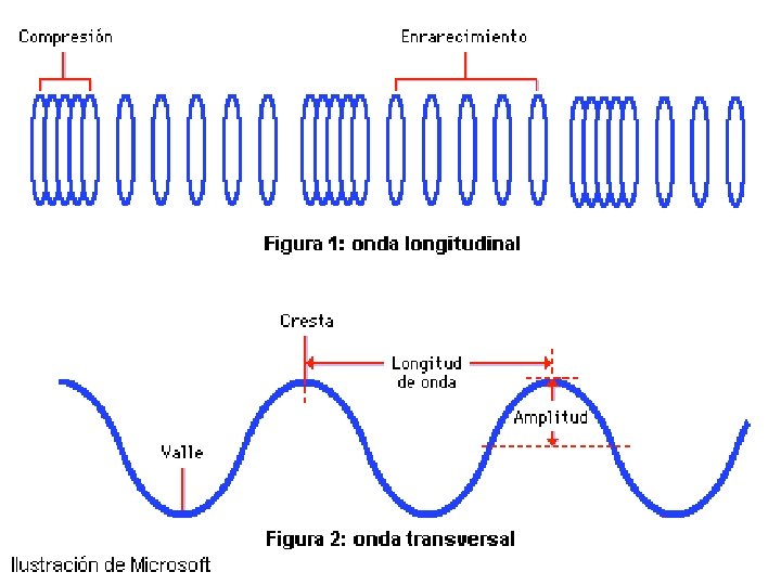 CARACTERISTICAS DE LAS ONDAS � Nos basaremos en las ondas transversales. La diferencia es que para las ondas longitudinales en lugar de crestas se tienen con presiones y, en lugar de valles tienen expansiones.