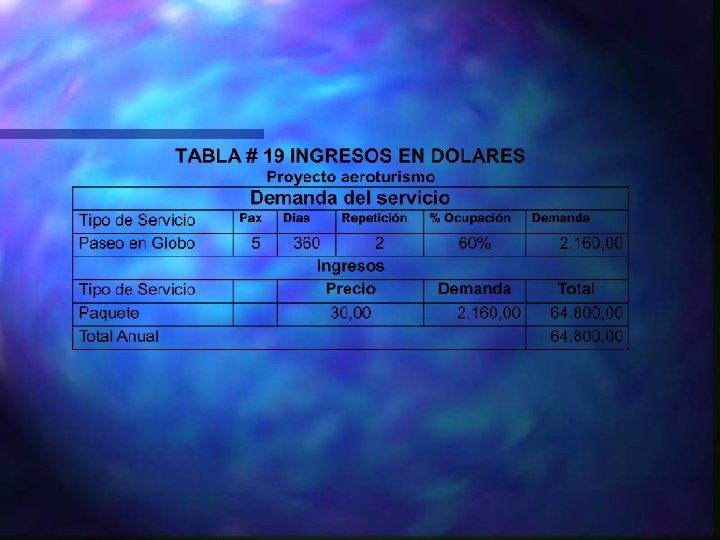 INVERSIÓN - INGRESOS DE LOS PROYECTOS Propuesta 1: Aeroturismo.