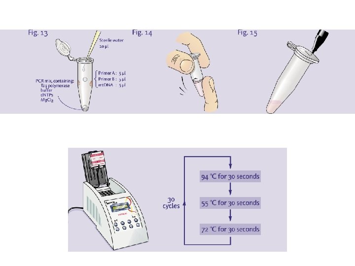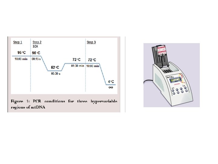 PROCEDURA d’estrazione di mt. DNA e analisi con PCR 1. Pulizia e decontaminazione dell’ambiente 2. Decontaminazione del reperto (no DNA esogeno) 3. Analisi microscopica del reperto (formazioni pilifera) ed eventuale confronto con il campione di riferimento (es. ossa, denti) 4. Estrazione dei mt. DNA (reperto e campione) e PCR 5. Purificazione e quantificazione 6. Sequenziamento automatico (Sanger): HVI, HVII (regioni controllo), SNP, STR, 7. analisi dei dati 8. Confronto col database
