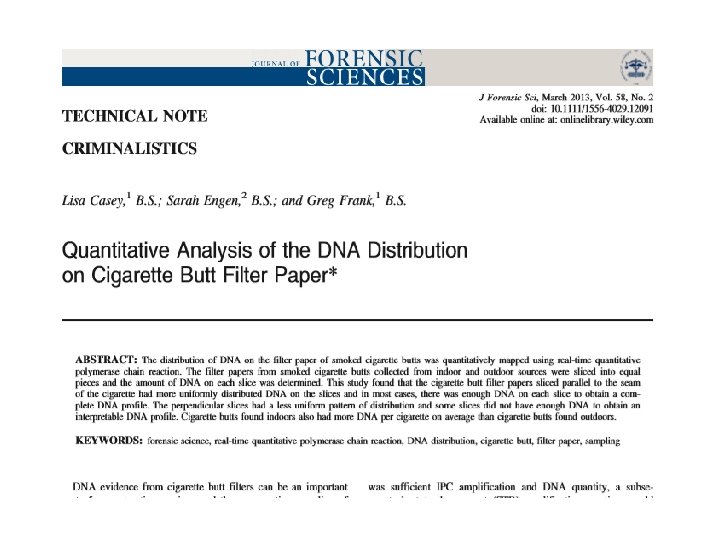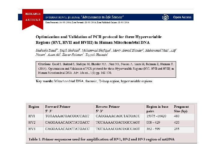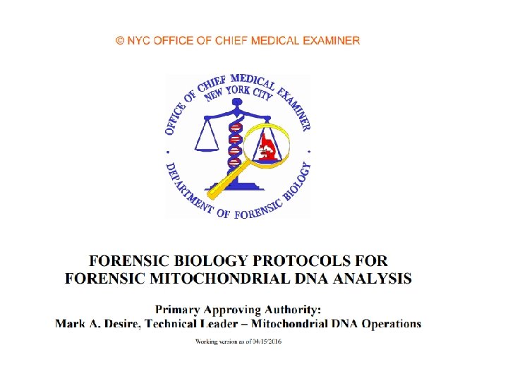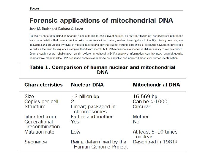 Q Extract mt. DNA from evidence (Q) sample Extract mt. DNA from reference (K) sample PCR Amplify HV 1 and HV 2 Regions Sequence HV 1 and HV 2 Amplicons Confirm sequence with forward and reverse strands Note differences from Anderson (reference) sequence (both strands) Compare Q and K sequences Compare with database to determine haplotype frequency Figure 10. 4, J. M. Butler (2005) Forensic DNA Typing, 2 nd Edition © 2005 Elsevier Academic Press K