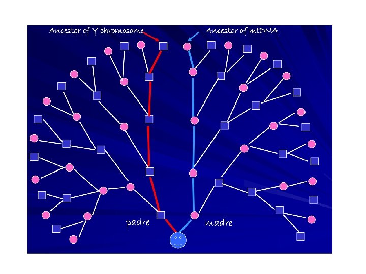 DNA mitocondriale (mt. DNA) mt-EVE Eva mitocondriale (mt. EVE) è una donna dal cui mt. DNA è scaturito il mt. DNA di tutti gli esseri umani viventi. L’mt. EVE è, per così dire, la PROGENITRICE di tutti gli esseri umani in pura linea materna Visse in Africa, circa 175. 000 annni fa