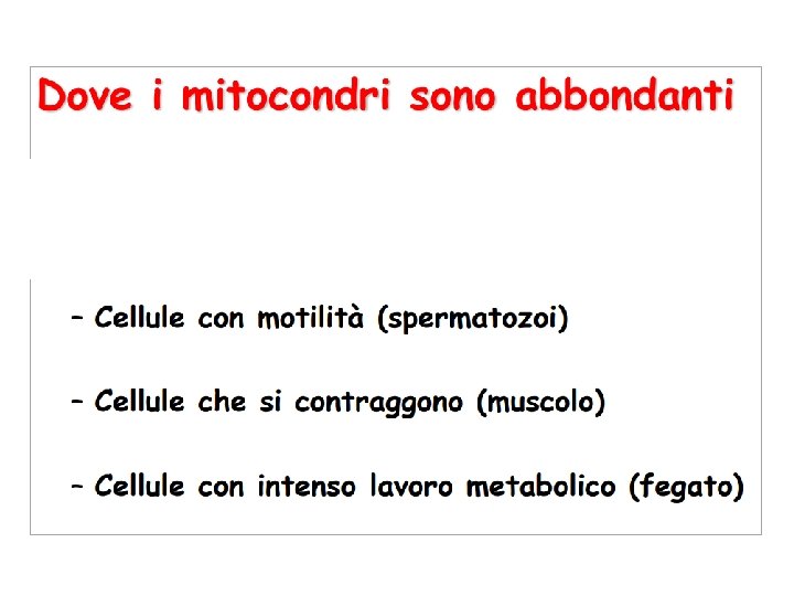 Mitocondri (cellule animali e vegetali): bastoncellari (O. 5 - 1 µm di spessore), fino a 10 µm di lunghezza • mt. DNA è nei mitocondri ELEVATO NUMERO DI COPIE (1000 -10000/cellula) • E’ un genoma APLOIDE, SENZA RICOMBINAZIONE • Tasso di mutazione: 6 -7 volte > g. DNA nucleare