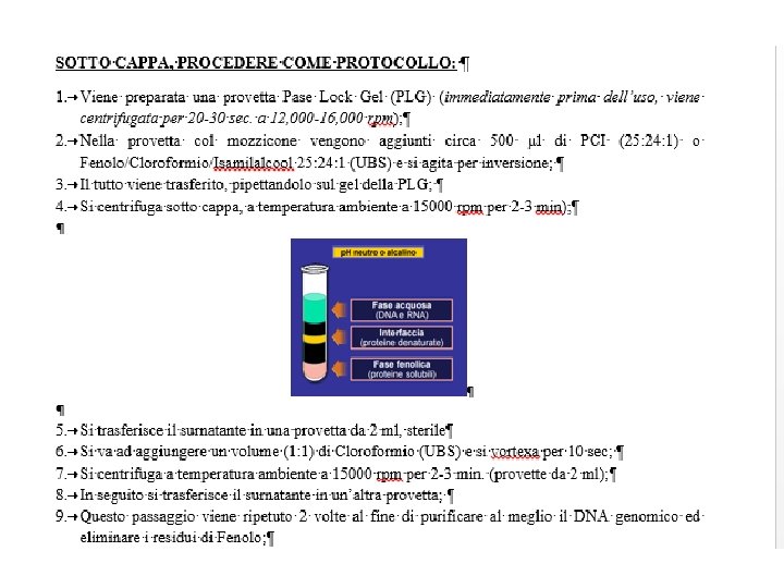 ESEMPIO DI ESERCITAZIONE: ESTRAZIONE DEL DNA col metodo organico (PCI)