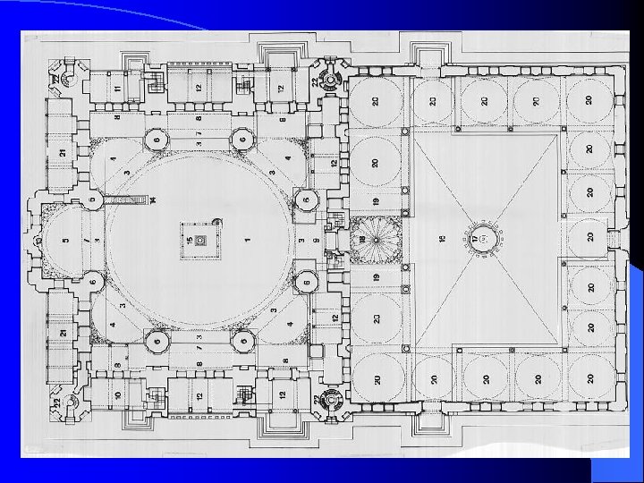 Eserin 31, 50 metre çapında ve yarım küre şeklindeki kubbesi yan kubbeler kullanılmadan 8 büyük ayak üzerine oturtulmuştur. Bu kubbe 1620 metrelik bir mekânı örtmüştür. Kubbe yüksekliği 43, 28 metredir. Kubbe kasnağındaki 40, genelindeki 999 pencere ile yapının aydınlatılması sağlanmıştır.