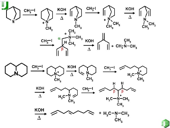 14. Completare le seguenti reazioni: a) dimetilpropilammina + H 2 O 2; b) il prodotto ottenuto in (a) sottoposto a riscaldamento; c) bromuro di trimetil(2 -metilbutil)ammonio + KOH a caldo.