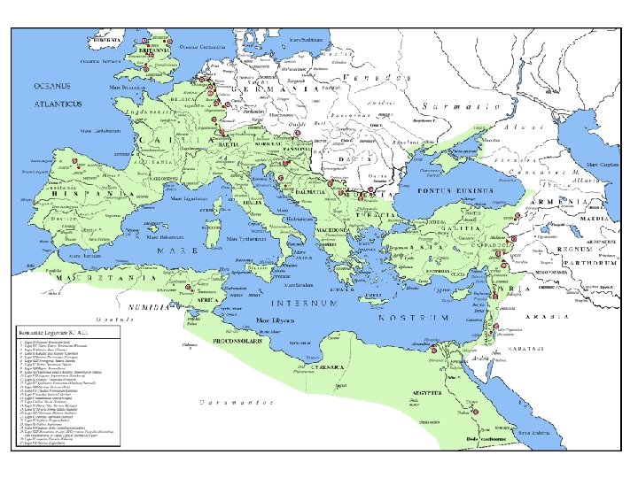 Legioni in età imperiale • Riduzione degli effettivi: • 28 legioni • dopo Varo 25 legioni in tutto (Durante le guerre civili le legioni erano arrivate a più di 60)