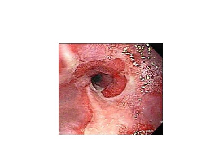 ESÓFAGO: ESOFAGITIS • • SÍNTOMAS: – Pirosis – Regurgitación – Dolor torácico que simula IAM (raro) • La intensidad de los síntomas no están relacionados con el grado de esofagitis POBLACIÓN: – Adultos/ancianos: normalmente por RGE – Adolescentes: RGE o esofagitis eosinofílica – Niños: RGE CONSECUENCIAS DE ESOFAGITIS: – Hemorragia – Estenosis esofágica por lesión continuada – Esófago de Barrett ENDOSCOPIA: – Mucosa hiperémica – Úlceras, erosiones