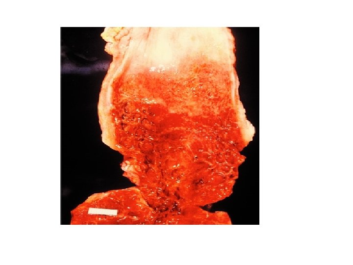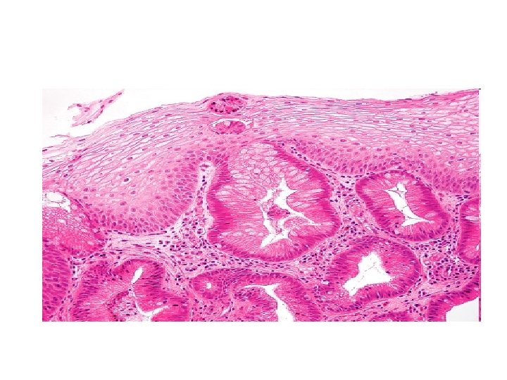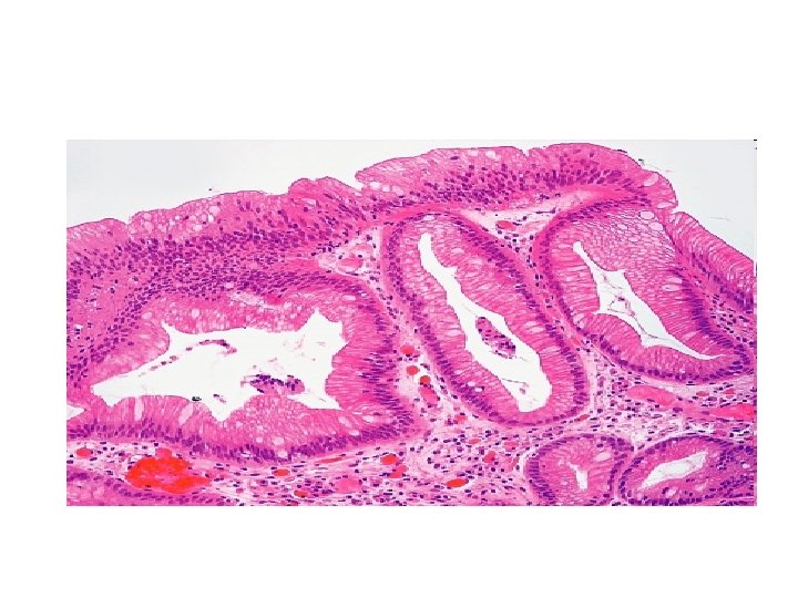ESÓFAGO: ADENOCARCINOMA • El único precursor del adenocarcinoma de esófago es el e. Barrett – Proceso largo (años) – El grado de displasia epitelial del Barrett es el factor que más predispone al desarrollo del adenocarcinoma • Displasia bajo grado: poca probabilidad de cáncer • Displasia alto grado: al año, m 10% riesgo de desarrollar cáncer – El riesgo que aporta el e. Barrett se debe a: • Incremento de la proliferación celular • Alteraciones cromosómicas acumuladas • Mutaciones del gen p 53