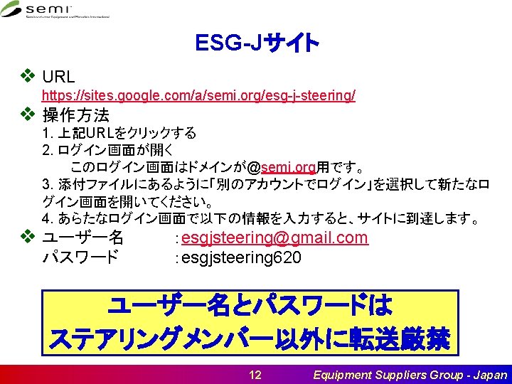 ESG-J Steering Use Only ESG-J Steering Committee Meeting R 0. 2 July. 19, 2018 at SEMI Japan Steering Committee ESG-Japan 1 Equipment Suppliers Group - Japan