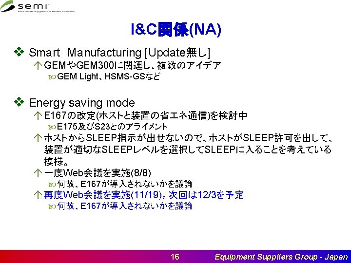 Standards Meetings 12 Equipment Suppliers Group - Japan