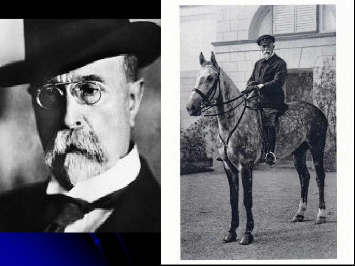 Tomáš Garrigue Masaryk Narození - 7. března 1850 - Hodonín Úmrtí - 14. září 1937 - Lány l l Ve funkci prezidenta: od 14. listopadu 1918 do 14. prosince 1935 l byl státník, politik, filozof, pedagog a první prezident Československé republiky. Za jeho zásluhy o stát mu parlament udělil titul „Prezident Osvoboditel‘‘ a celkem sedmnáctkrát byl navržen na Nobelovu cenu míru.