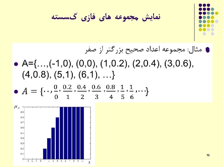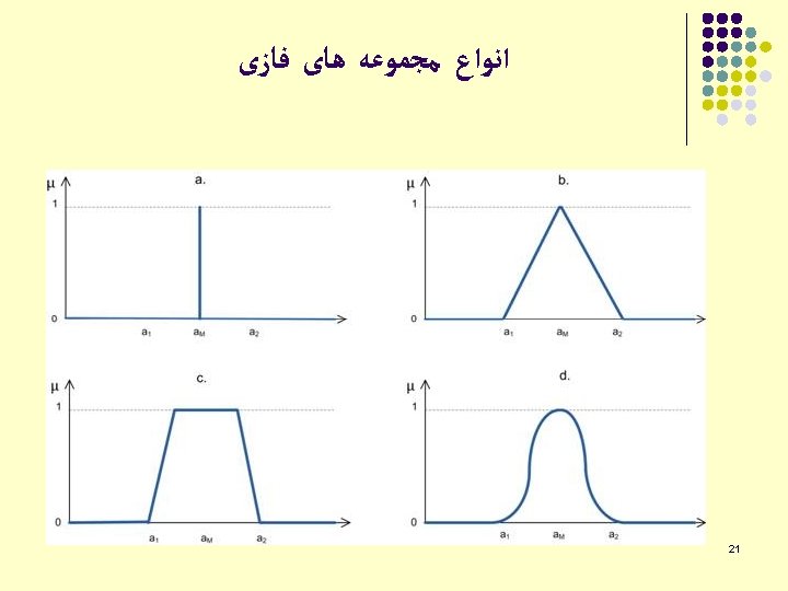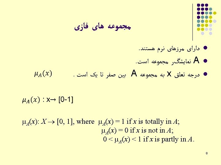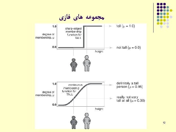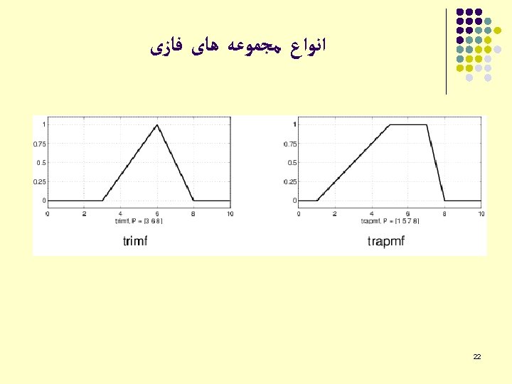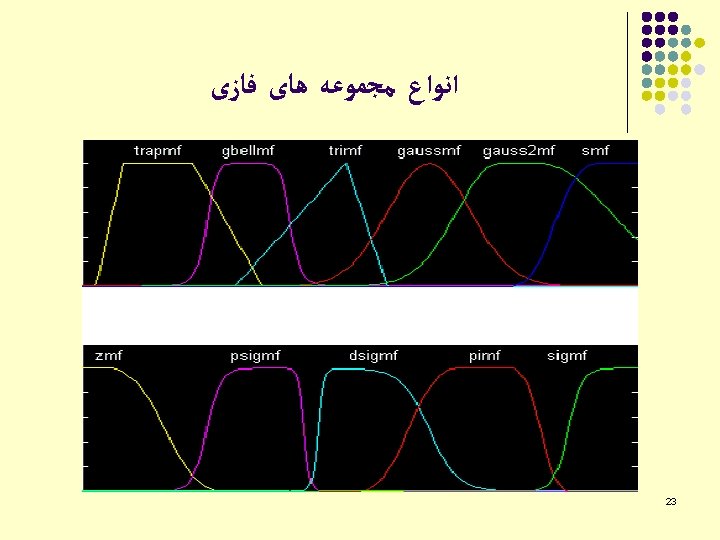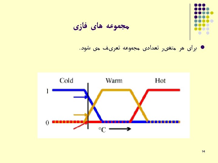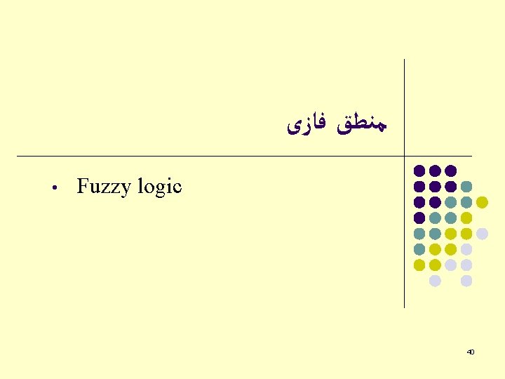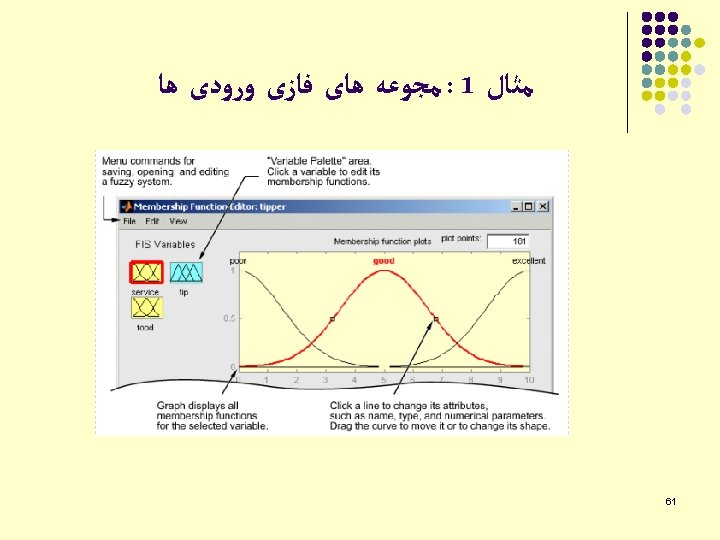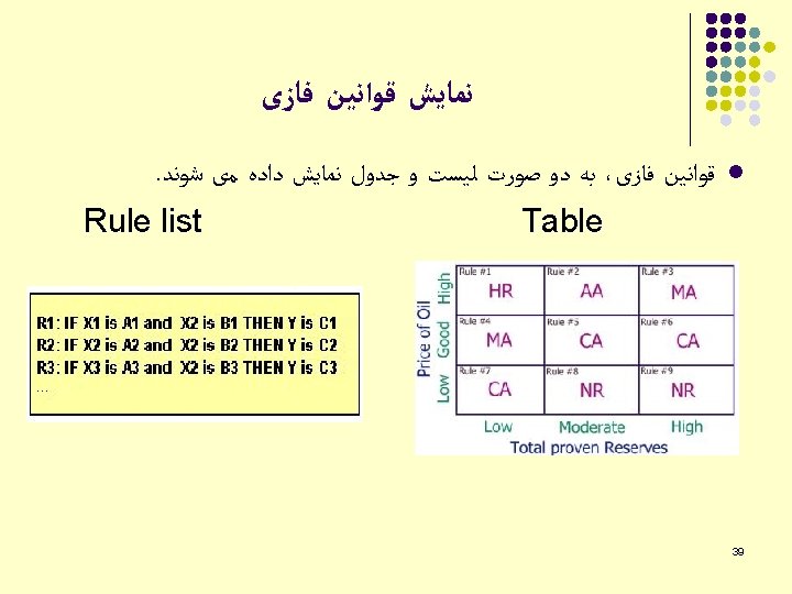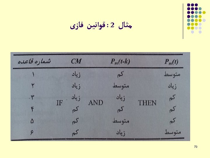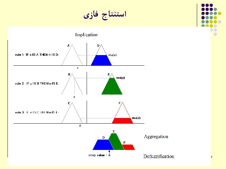 ﻗﺴﻤﺖ ﺍگﺮ : ﻗﻮﺍﻧﻴﻦ ﻓﺎﺯی A fuzzy rule can have multiple antecedents, for example: IF AND THEN project_duration is long project_staffing is large project_funding is inadequate risk is high IF service is excellent OR food is delicious THEN tip is generous