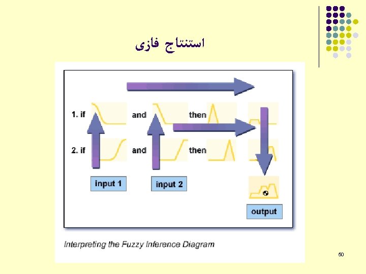 ﻣﺮﺍﺣﻞ ﺍﺳﺘﻨﺘﺎﺝ ﻓﺎﺯی l l l Fuzzification Fuzzy matching : Calculation of degree of match for each rule. Fuzzy Inference (Implication) : Inference from each rule. Two methods of ‘clipping’ and ‘scaling’. Combination (aggregation) : Combination of the resultants. Defuzzification (optional) : Two methods of ‘MOM’ and ‘COA’. 48
