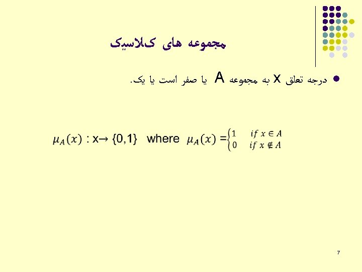ﻣﺠﻤﻮﻋﻪ ﻫﺎی ﻓﺎﺯی • • • Classic sets Fuzzy sets Types of fuzzy sets Classic set operators (and, or, not) Fuzzy set operators 5