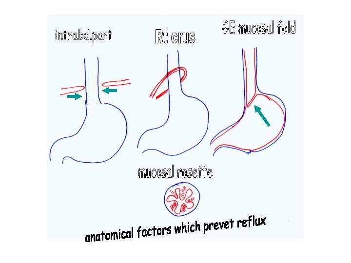 Physiology Lower oesophageal sphincter (LOS): n n The lower 3 -4 cm of the oesophagus has a pressure of 10 -25 mm. Hg (the intreagastric pr is 7 mm. Hg). This high pressure is due to anatomical &physiological factors. Anatomical factors: n n n Intra -abdominal part of the oesophagus (2 cm) Pinch cock mechanism of the right crus of the diaphragm Angle of his Mucosal rosette Thickening of the circular muscles fibres of the lower part of the oesophagus Physiological factors: n Continuous release of acetyl choline at the lower end of the oesophagus