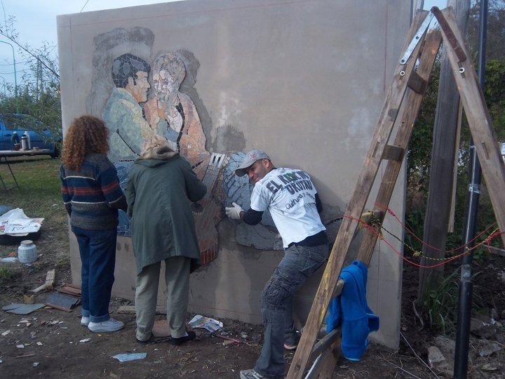 Emplazamientos Esta acción cultural por la memoria se materializa y proyecta en la realización de murales utilizando la técnica de mosaico, siendo colocados en el espacio público, particularmente en el barrio al que pertenecía la víctima Respecto a esto Melina Slobodián, integrante fundadora del Rancho, explica: “definimos una mecánica con el primero, y era ponerlo siempre en un espacio público y lo más cerca posible del domicilio de la persona, justamente para que los vecinos, que en general no hablan de ese tema, empiecen a hablar, como obligarlos a hablar”