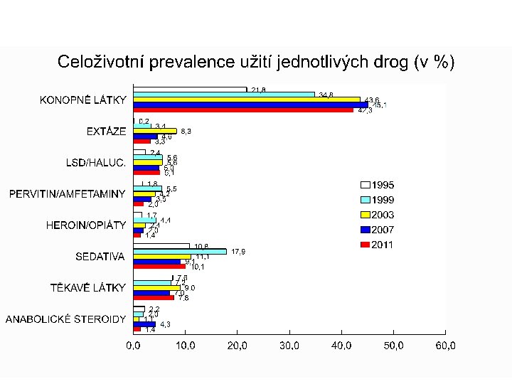 Cíle studie ESPAD • získat spolehlivé informace o rozsahu užívání návykových látek mezi českou mládeží; • sledovat trendy, k nimž došlo od roku 1995; • analyzovat základní kontextové vztahy u vybraných indikátorů návykového chování; • porovnat situaci v ČR se situací v Evropě.