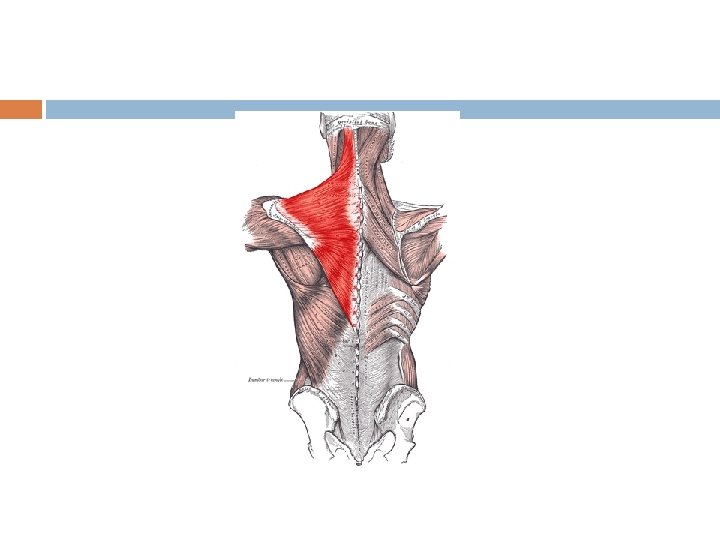 Músculo Dorsal Largo Músculo que constituye la parte medial del platisma lumbosacro. Se extiende desde el coxis hasta el sacro. Posee dos funciones importantes: De forma unilateral: inclinación y rotación hacia el mismo lado. De forma bilateral: extensión o hiperextensión de la columna.