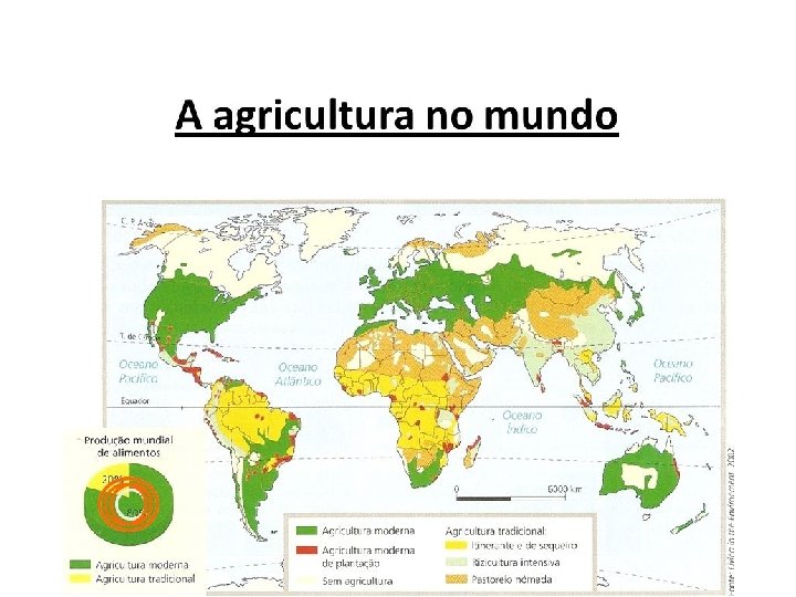 AGRICULTURA DE SUBSISTÊNCIA • Produção destinada ao consumo do produtor • Geralmente associada a pequenas propriedades • Utilização de técnicas mais simples • Pouco acesso ao crédito agrícola
